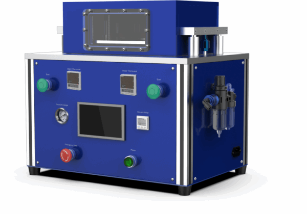 The vacuum sealing machine is used to degas and reseal a pouch cell after electrolyte injection and cell formation. It ensures air-free encapsulation of electrodes and electrolytes to prevent the exposure of the cell materials and electrolyte leakage. This machine automatically vacuums and seals the pouch after piercing the airbag.
